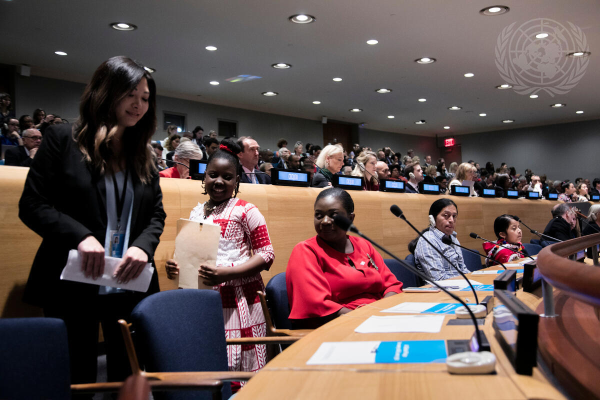 Children and youth wait to speak at the high-level commemorative event of the General Assembly on thirtieth anniversary of the adoption of the Convention on the Rights of the Child.