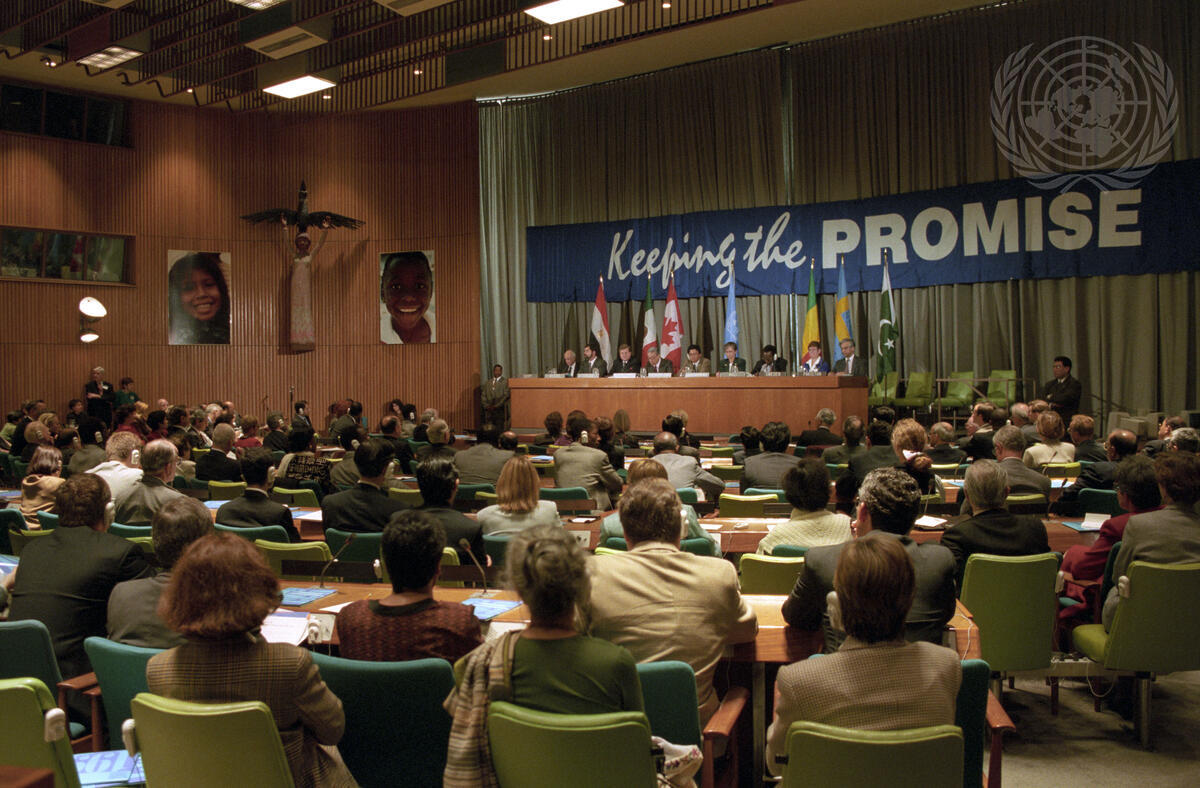 The United Nations Children's Fund (UNICEF) sponsored this commemorative meeting at Headquarters, titled ""Keeping the Promise"", on the occasion of the mid-decade review of progress made on goals set at the World Summit for Children in 1990.