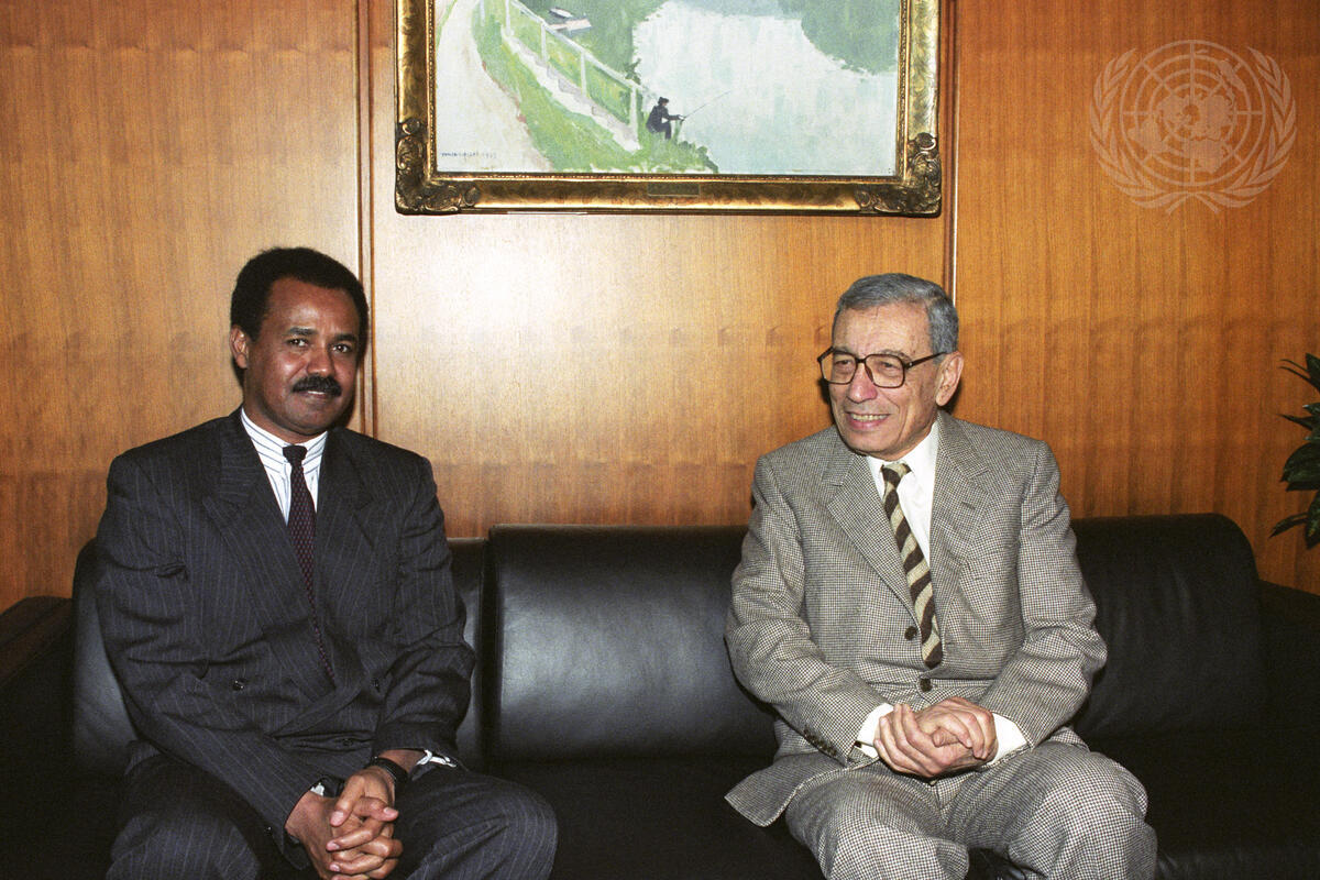 Secretary-General Boutros Boutros-Ghali (right) meets with President Issaias Afwerki of Eritrea.