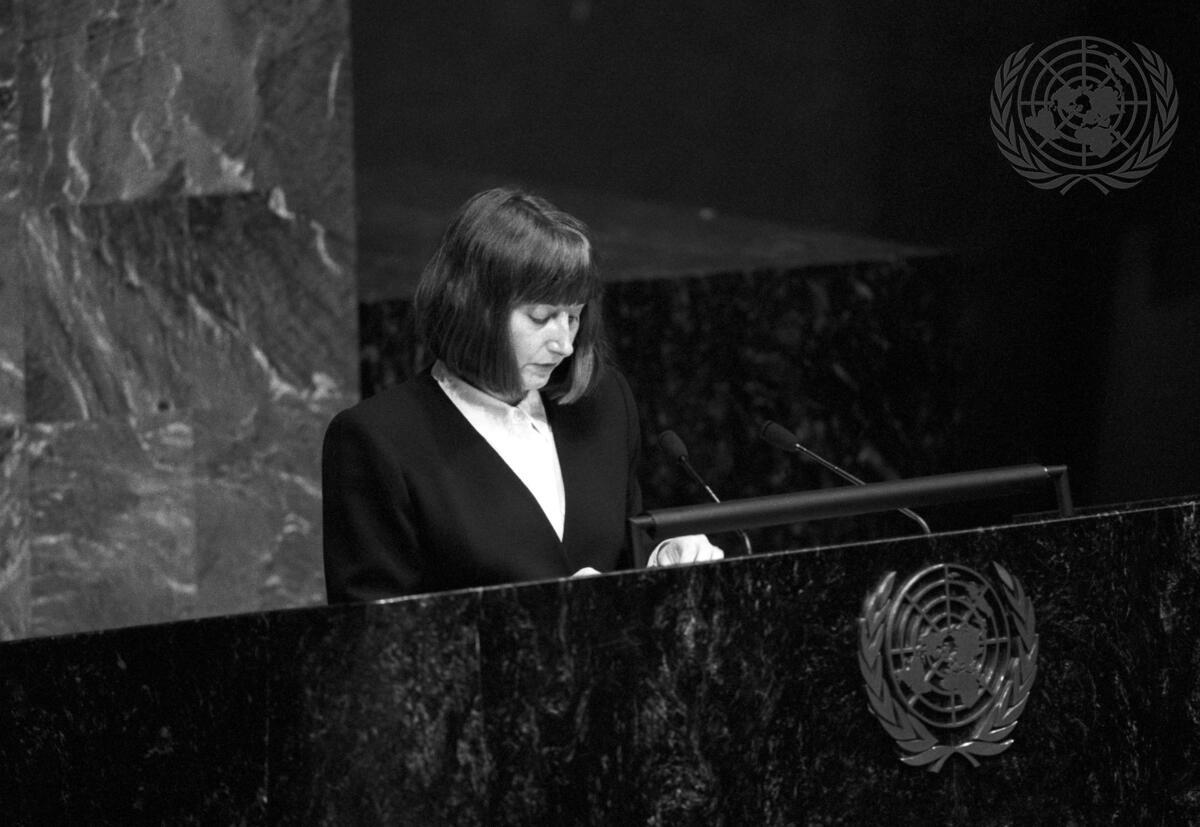 Silvia A. Fernandez de Gurmendi (Argentina), Rapporteur, Sixth Committee, presents the report to the General Assembly.