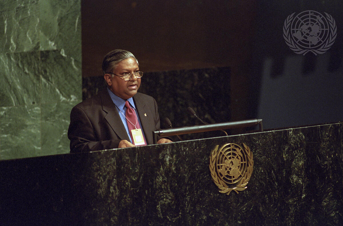 Hussain Shihab, Permanent Representative of Maldives to the United Nations, addresses the General Assembly during its debate to combat international terrorism.