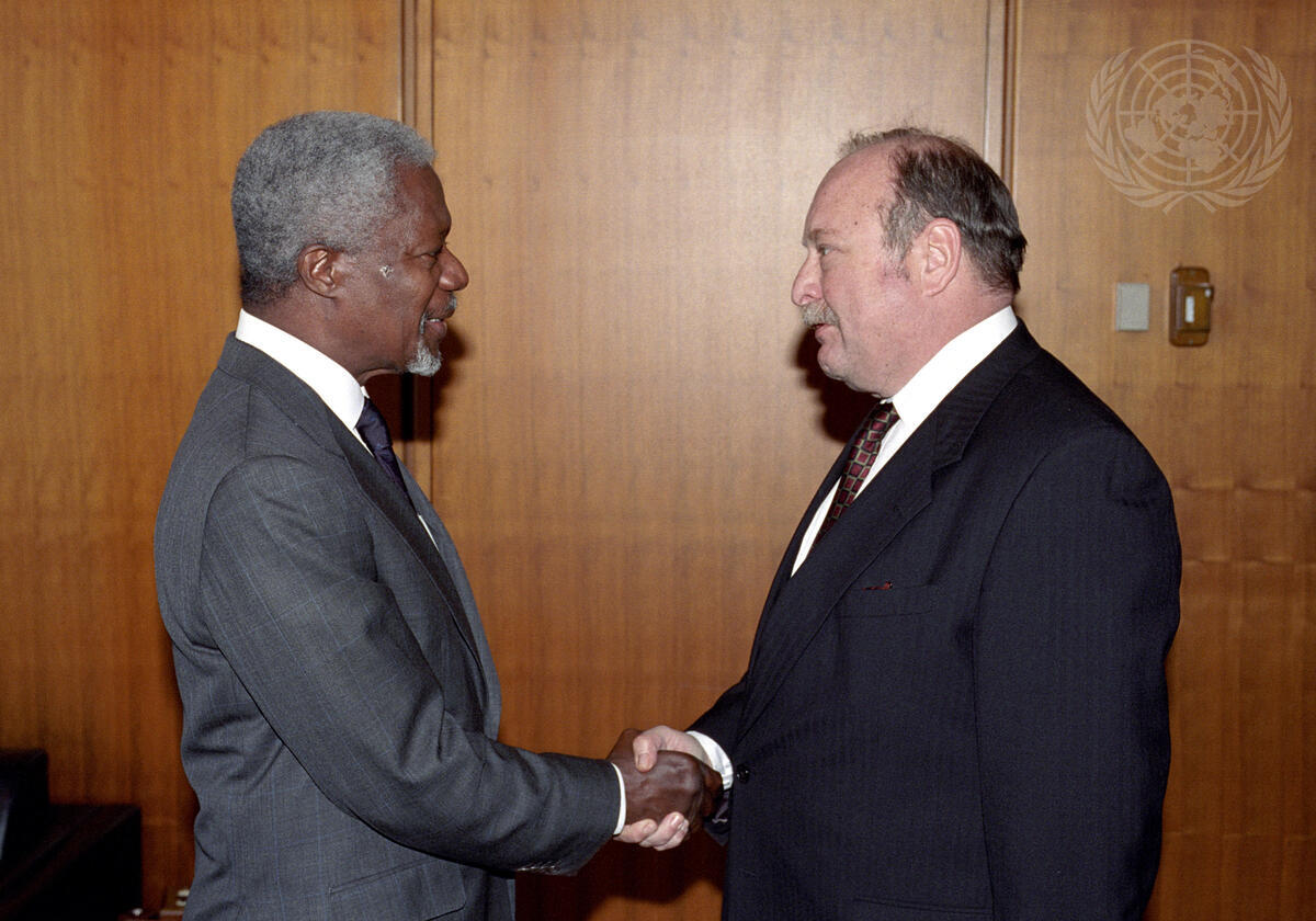 Secretary-General Kofi Annan (left) meeting with Milos Alcalay, Chairman of the