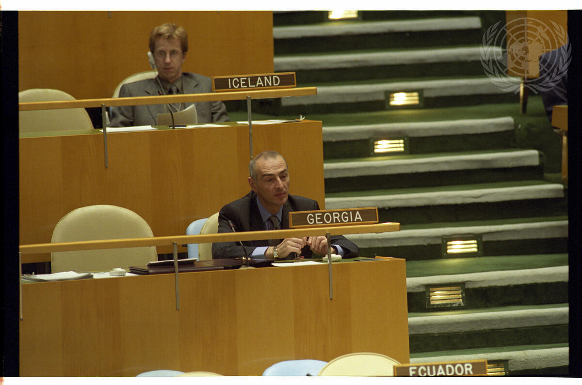 A delegate from Georgia attends the fifty-seventh session of the United Nations General Assembly.