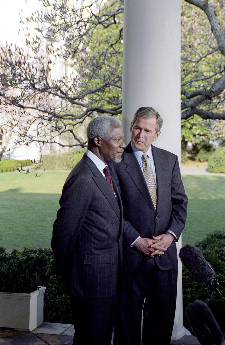 Secretary-General Kofi Annan (left) meeting with President George W. Bush of the United States, in Washington, D.C.