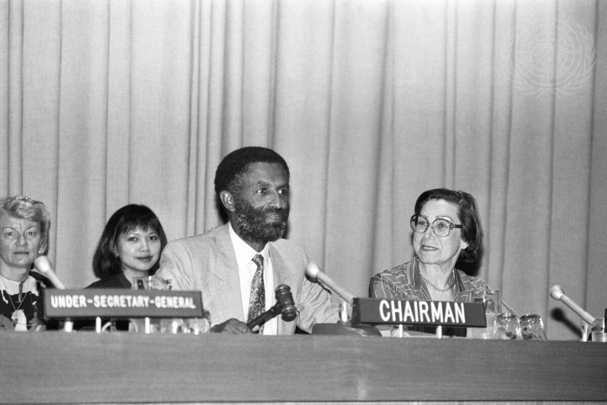 Tesfaye Tadesse (Ethiopia), Chairman of the Committee, calling the meeting to order today. At right is Odile Rives-Nissel, Committee Secretary.