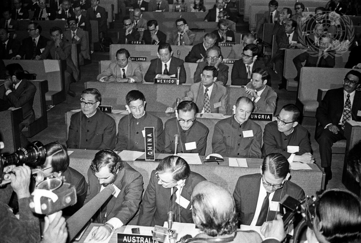 A partial view of the meeting. At centre is the delegation of China (l. to r.): Mr. Chung Pu-Sheng, Mr. Hsu Shih-Wei, Mr. Yao Kuang, Ambassador to Mexico, Mr. Sai Tzu-Shung and Mr. Yu Cheng-Jen. [Exact date unknown]
