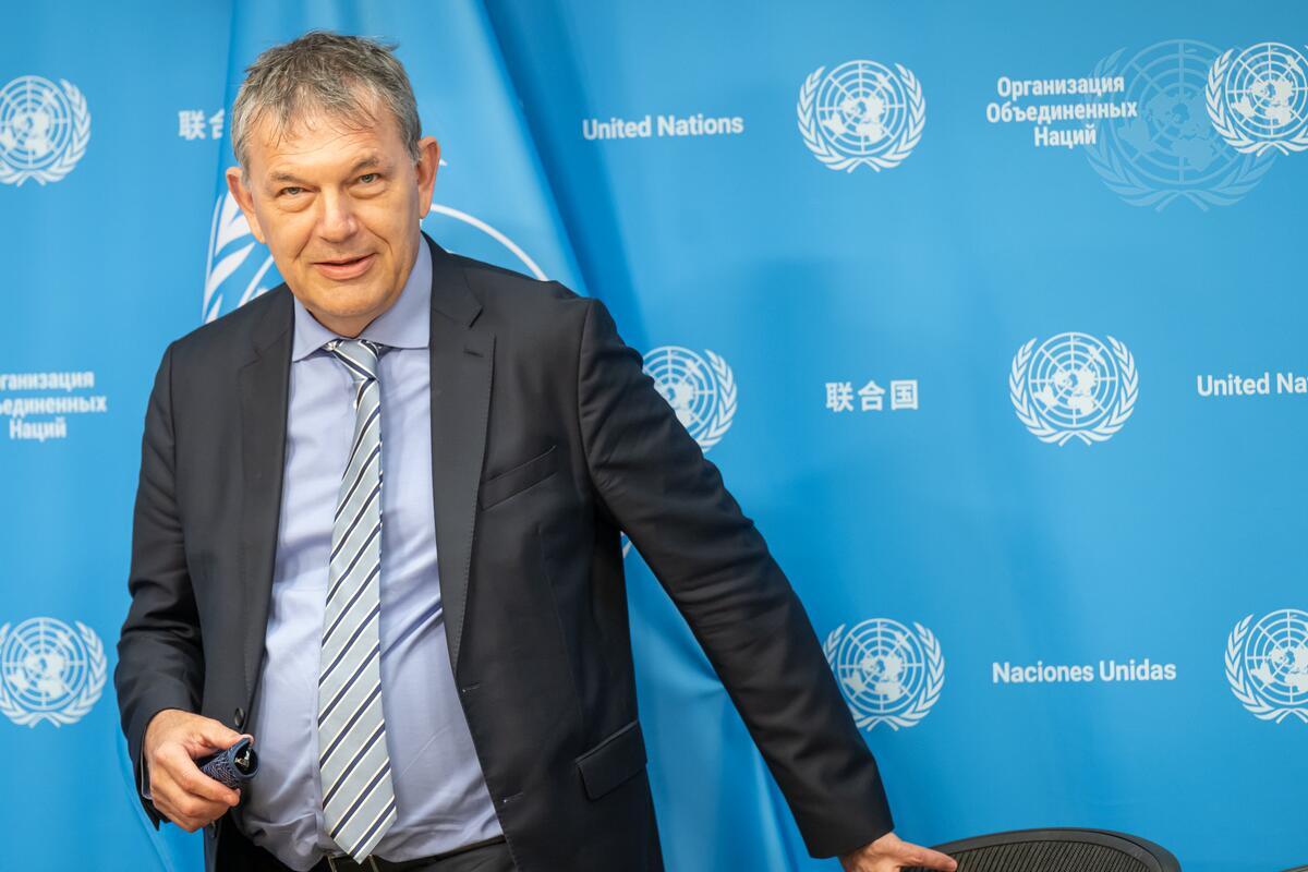Philippe Lazzarini, Commissioner-General of the United Nations Relief and Works Agency for Palestine Refugees in the Near East (UNRWA), briefs reporters at UN Headquarters.