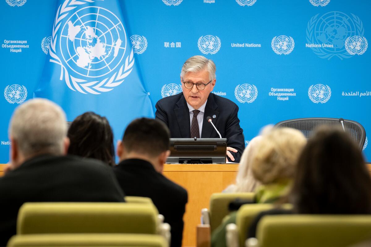 Jean-Pierre Lacroix, Under-Secretary-General for Peace Operations, briefs reporters at UN Headquarters.