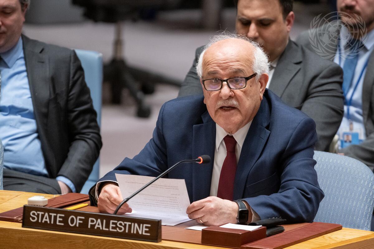 Riyad Mansour, Permanent Observer of the State of Palestine to the United Nations, addresses the Security Council meeting on the situation in the Middle East, including the Palestinian question.