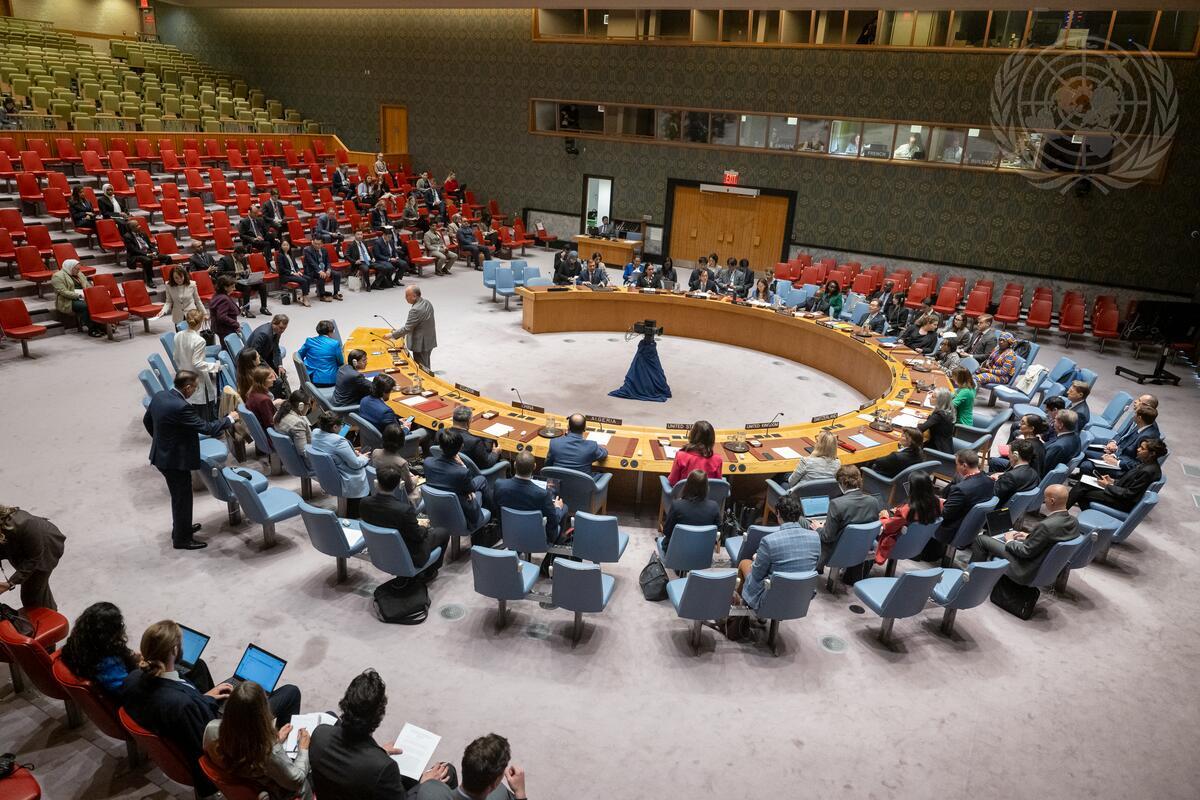 A wide view of the Security Council meeting on the situation in Afghanistan. The Council heard a report of the Secretary-General on the situation in Afghanistan and its implications for international peace and security.