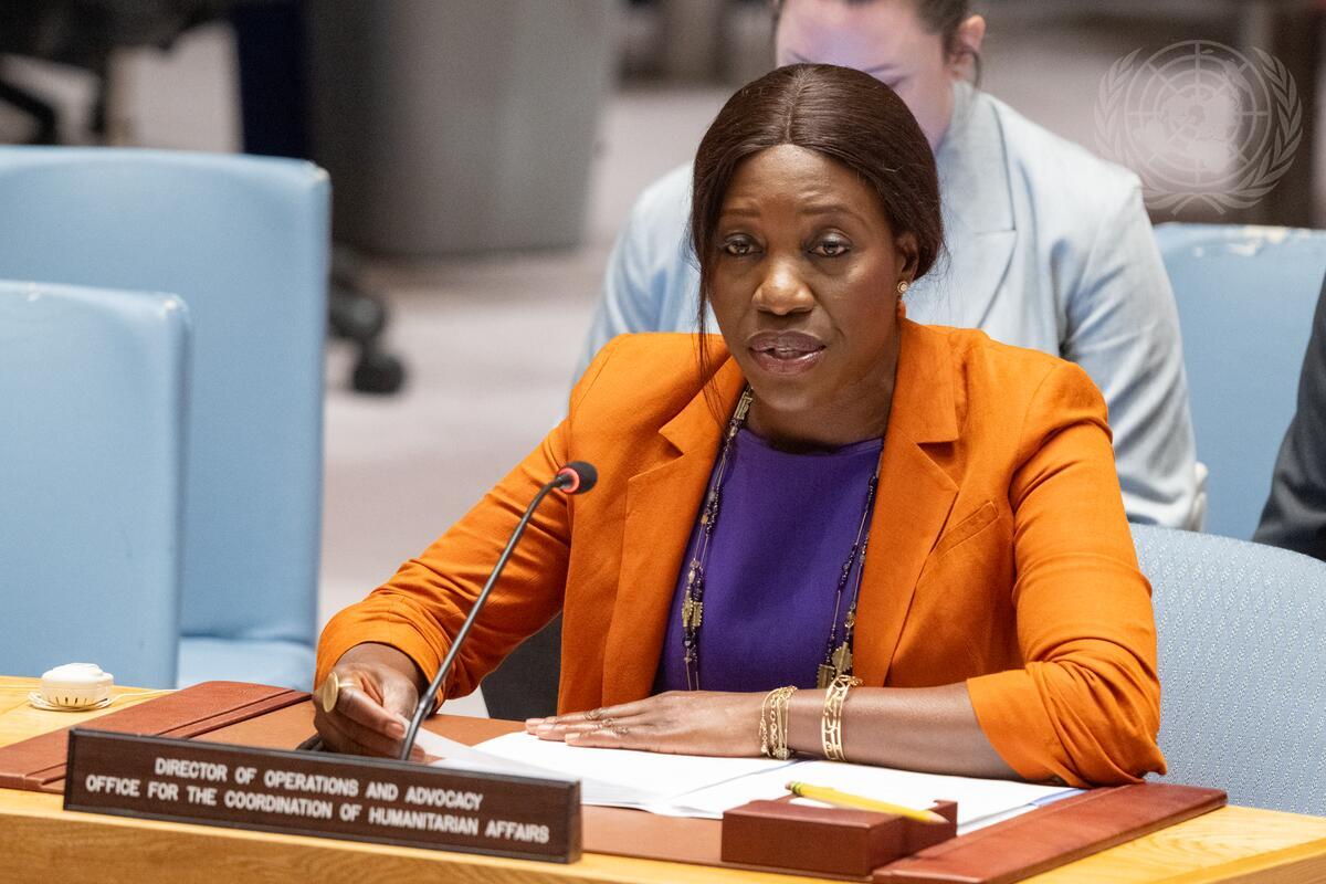 Edem Wosornu, Director of Operations and Advocacy of the Office for the Coordination of Humanitarian Affairs (OCHA), briefs the Security Council meeting on the situation in the Sudan and South Sudan.
