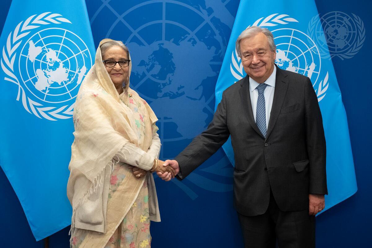 Secretary-General António Guterres (right) meets with Sheikh Hasina, Prime Minister of the People’s Republic of Bangladesh.