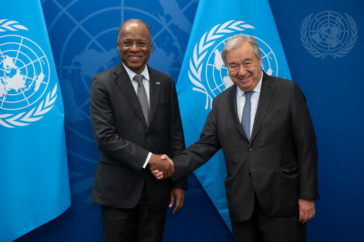 Secretary-General António Guterres (right) meets with José Ulisses Correia e Silva, Prime Minister of the Republic of Cabo Verde.