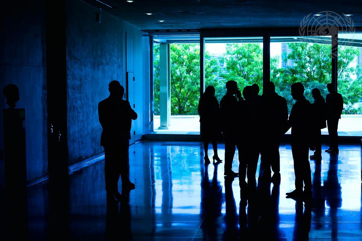 A view of people in a corridor at the UN Headquarters on the fourth day of 78th General Assembly Debate.