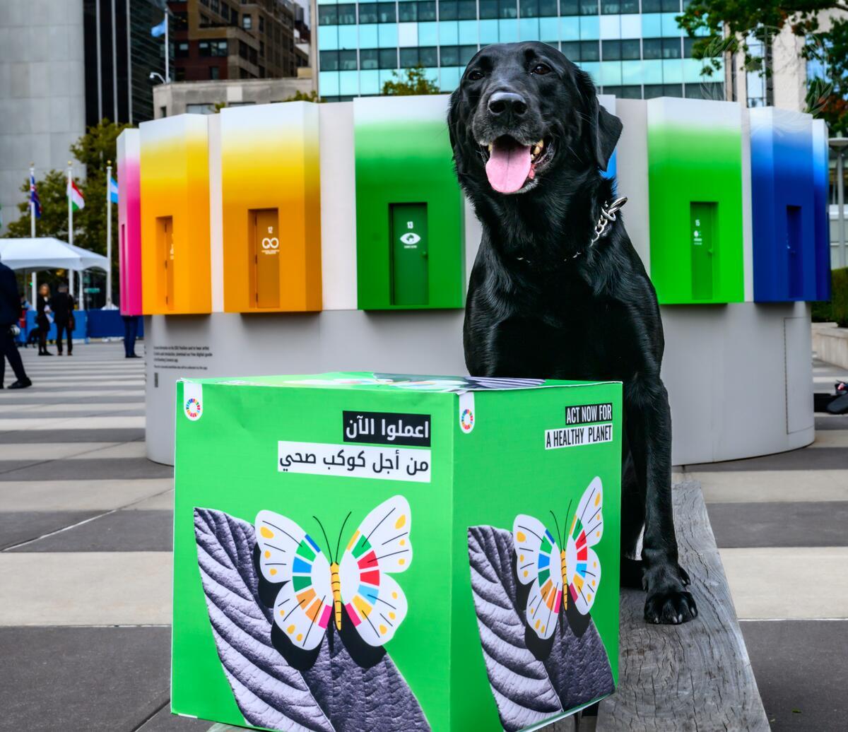 A UN Canine Unit dog poses for photos during the General Assembly High-level Week. The Unit's dogs and their handlers, all UN Security Officers, are responsible for explosives detection, conducting sweeps throughout UN Headquarters.