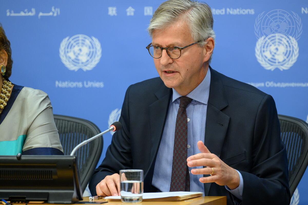 Jean-Pierre Lacroix, Under-Secretary-General for Peace Operations, speaks during the press briefing on the 2023 United Nations Peacekeeping Ministerial that will be held in Accra, Ghana, on 5-6 December.