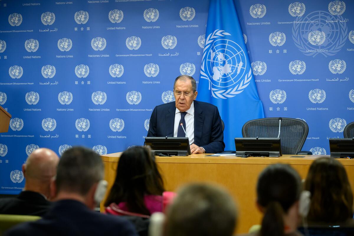 Foreign Minister of Russian Federation Briefs Press at UN Headquarters