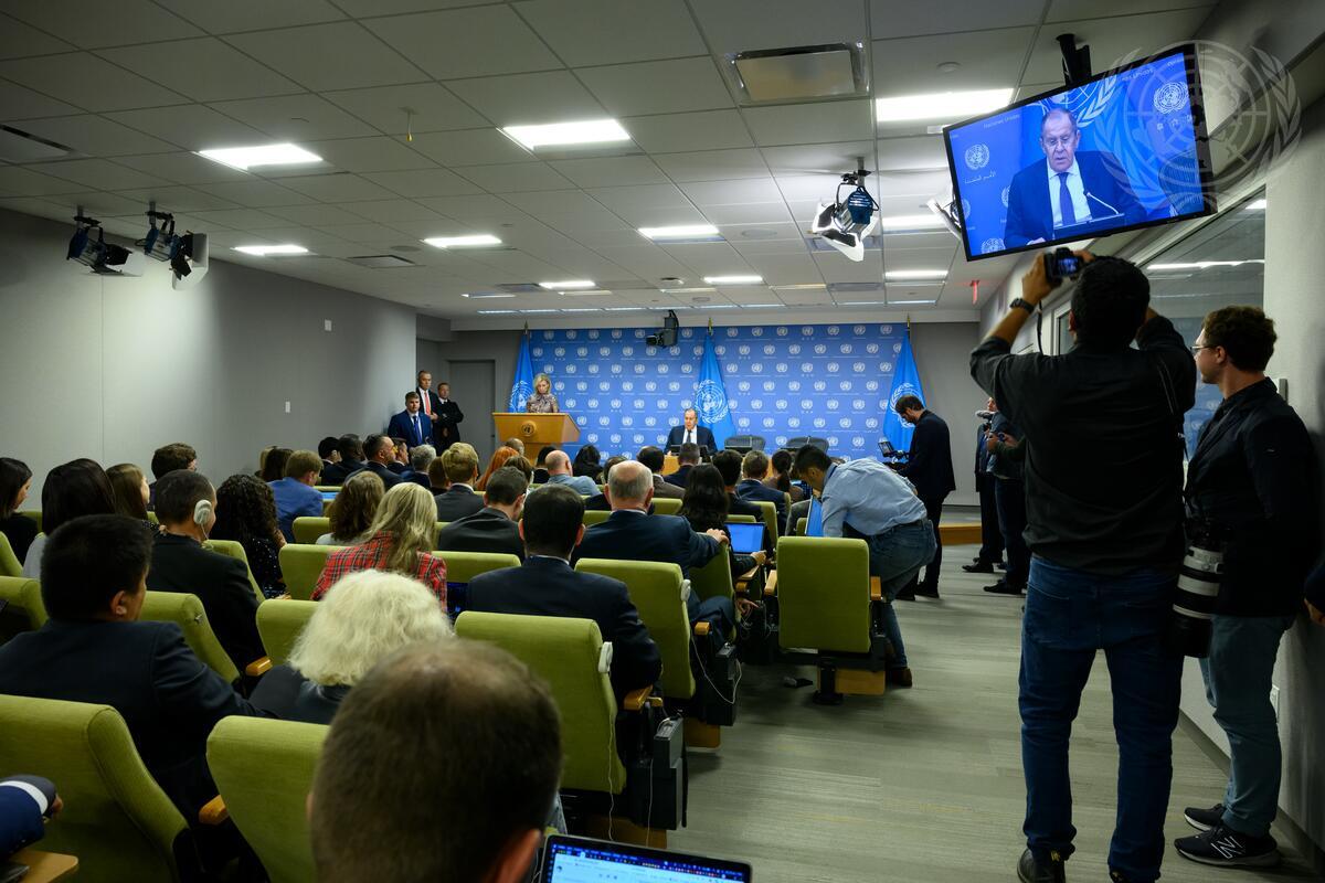 Foreign Minister of Russian Federation Briefs Press at UN Headquarters