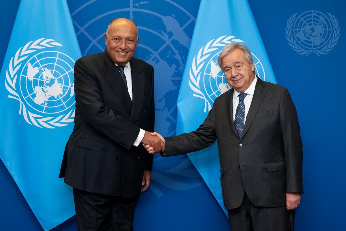 Secretary-General António Guterres (right) meets with Sameh Hassan Shoukry Selim, Minister for Foreign Affairs of Egypt.
