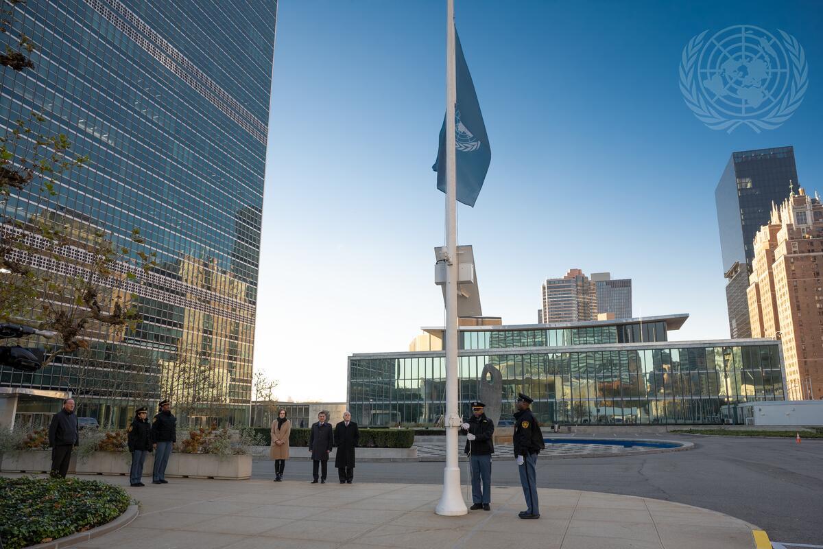 Flag Lowering at UN Headquarters for Colleagues Killed in Gaza