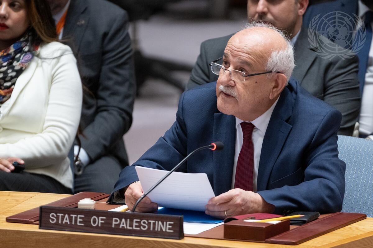 Riyad Mansour, Permanent Observer of the State of Palestine to the United Nations, addresses the Security Council meeting on the situation in the Middle East, including the Palestinian question.