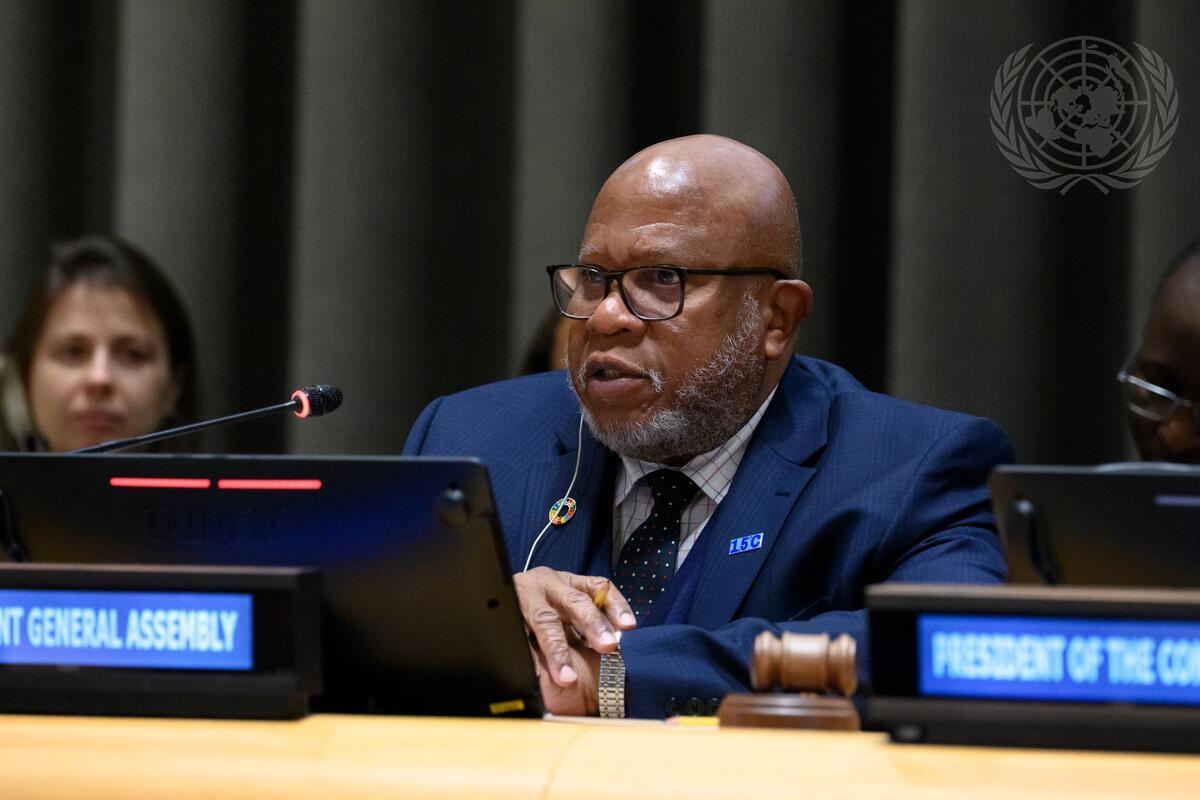 Dennis Francis, President of the seventy-eighth session of the General Assembly, addresses the fourth session of the Conference on the Establishment of a Middle East Zone Free of nuclear weapons and other Weapons of Mass Destruction.