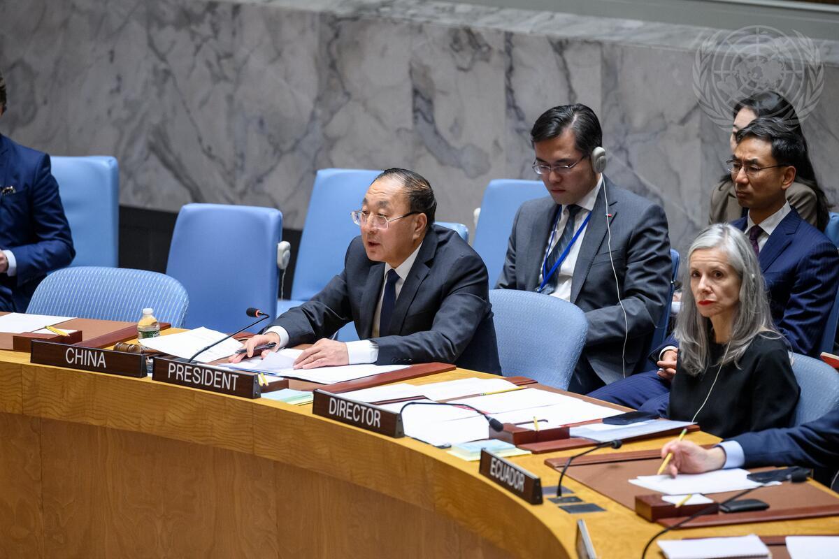 Zhang Jun (left), Permanent Representative of China to the United Nations and President of the Security Council for the month of November, chairs the Council meeting on the situation in Bosnia and Herzegovina.