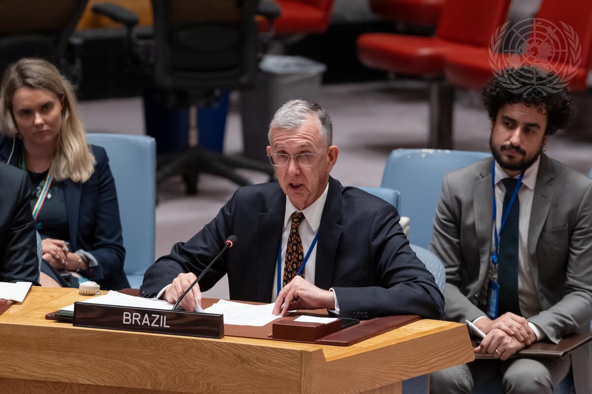 Sérgio França Danese, Permanent Representative of Brazil to the United Nations, addresses the Security Council meeting on the maintenance of international peace and security. The meeting focused on the role of women and young people.
