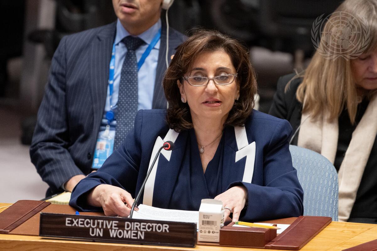 Sima Sami Bahous, Executive Director of UN Women, briefs the Security Council meeting on the situation in the Middle East, including the Palestinian question.