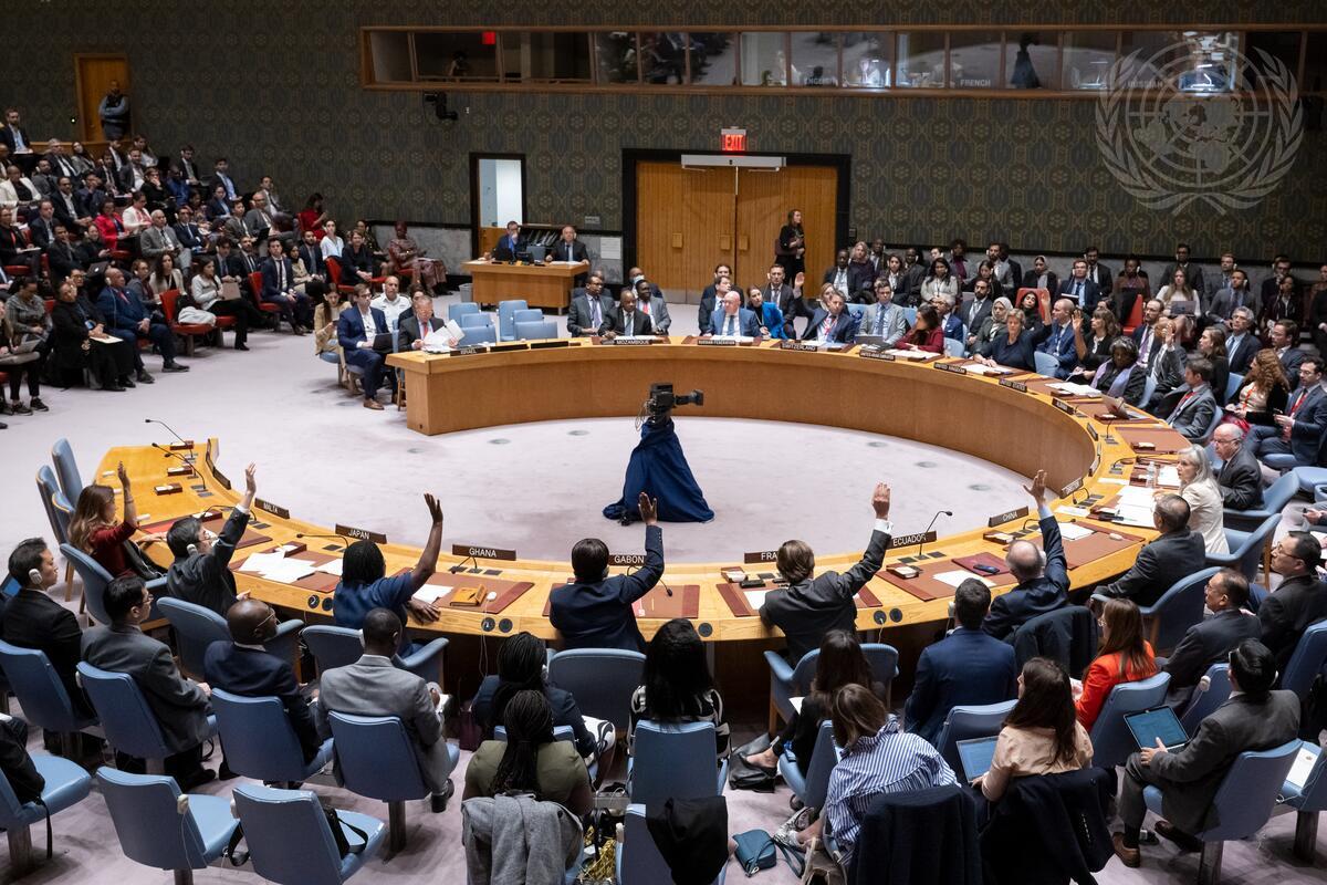The Security Council votes on a draft resolution during the meeting on the situation in the Middle East, including the Palestinian question.