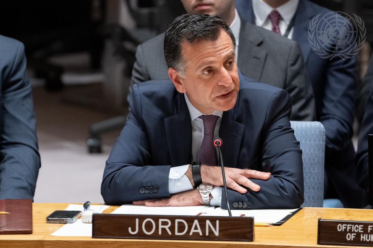 Mahmoud Daifallah Mahmoud Hmoud, Permanent Representative of the Hashemite Kingdom of Jordan to the United Nations, briefs the Security Council meeting on the situation in the Middle East, including the Palestinian question.