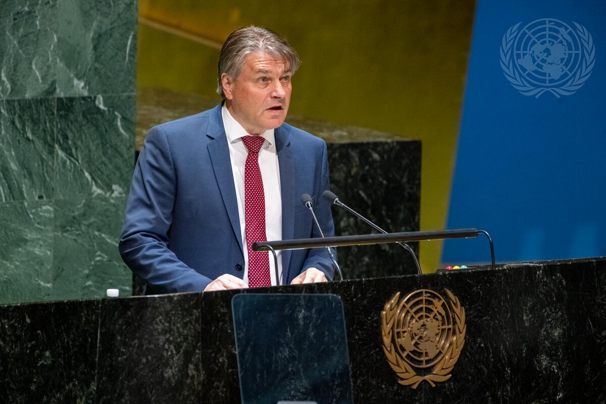 Václav Bálek, President of the Human Rights Council, presents the report of the Human Rights Council to the 23rd plenary meeting of the General Assembly.