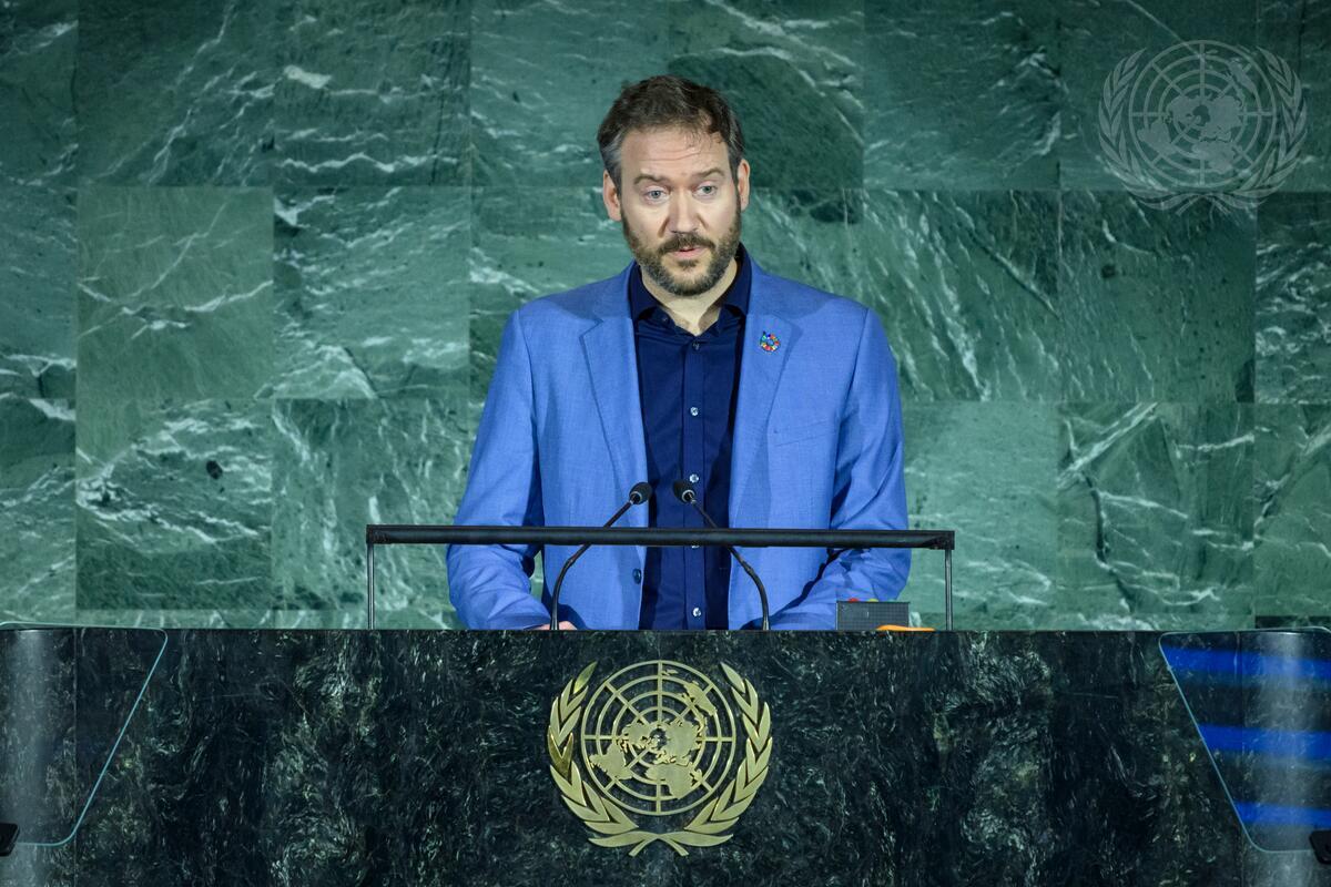 Oli Henman (at podium), Major Groups and other Stakeholders (MGoS) Coordination Mechanism Co-Chairs, addresses the opening of Summit of the Future Action Day Two. Action Day 2, which coincides with International Day of Peace, focuses on multistakeholder partnership and action – paving a way towards a next chapter of multilateralism that is more inclusive and networked. To achieve this, the Action Day 2 will address three priority themes: A Digital Future for All; A Peaceful Future for All; and A Sustainable Future for All.
