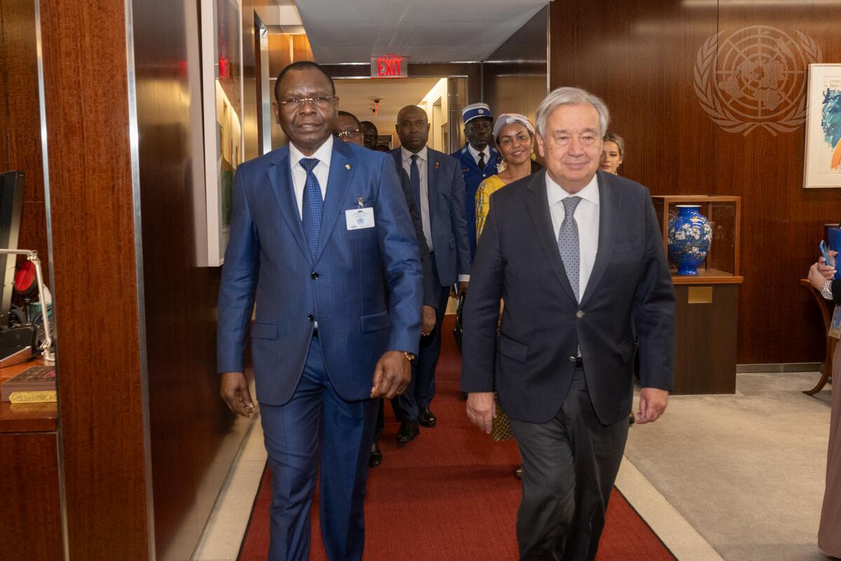 Secretary-General António Guterres (right) meets with Allah Maye Halina, Prime Minister and Head of Government of the Republic of Chad.