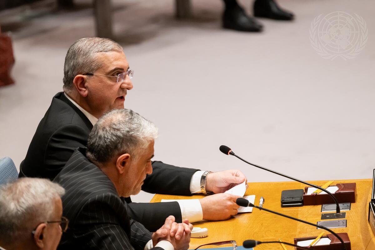 In the centre is Amir Saeid Iravani, Permanent Representative of the Islamic Republic of Iran, and below is Abdallah Bouhabib, Minister for Foreign Affairs and Emigrants of the Republic of Lebanon.