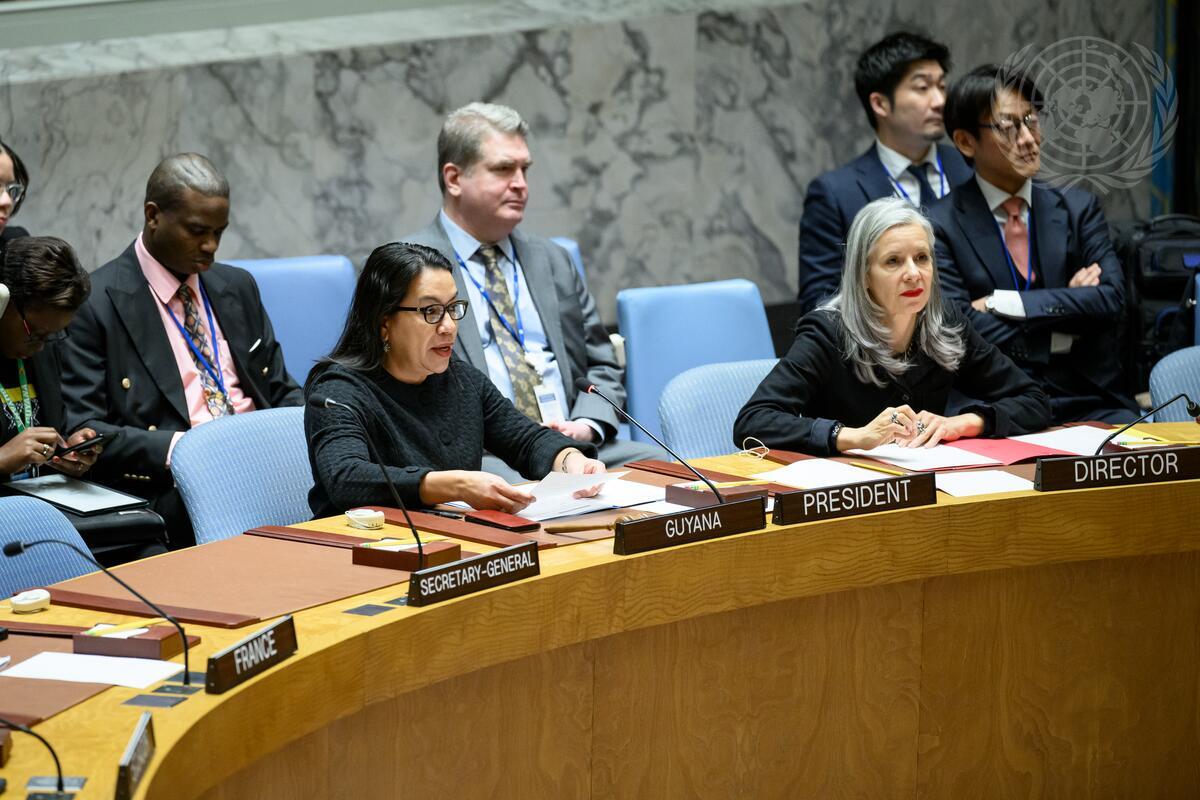 Carolyn Rodrigues-Birkett (centre at table), Permanent Representative of Guyana to the United Nations and President of the Security Council for the month of February, chairs the Security Council meeting on the situation concerning Iraq.