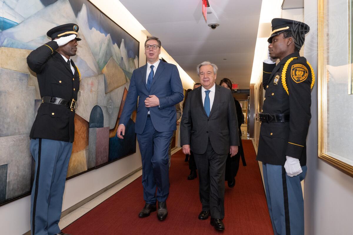 Secretary-General António Guterres (right) meets with Aleksandar Vučić, President of the Republic of Serbia.