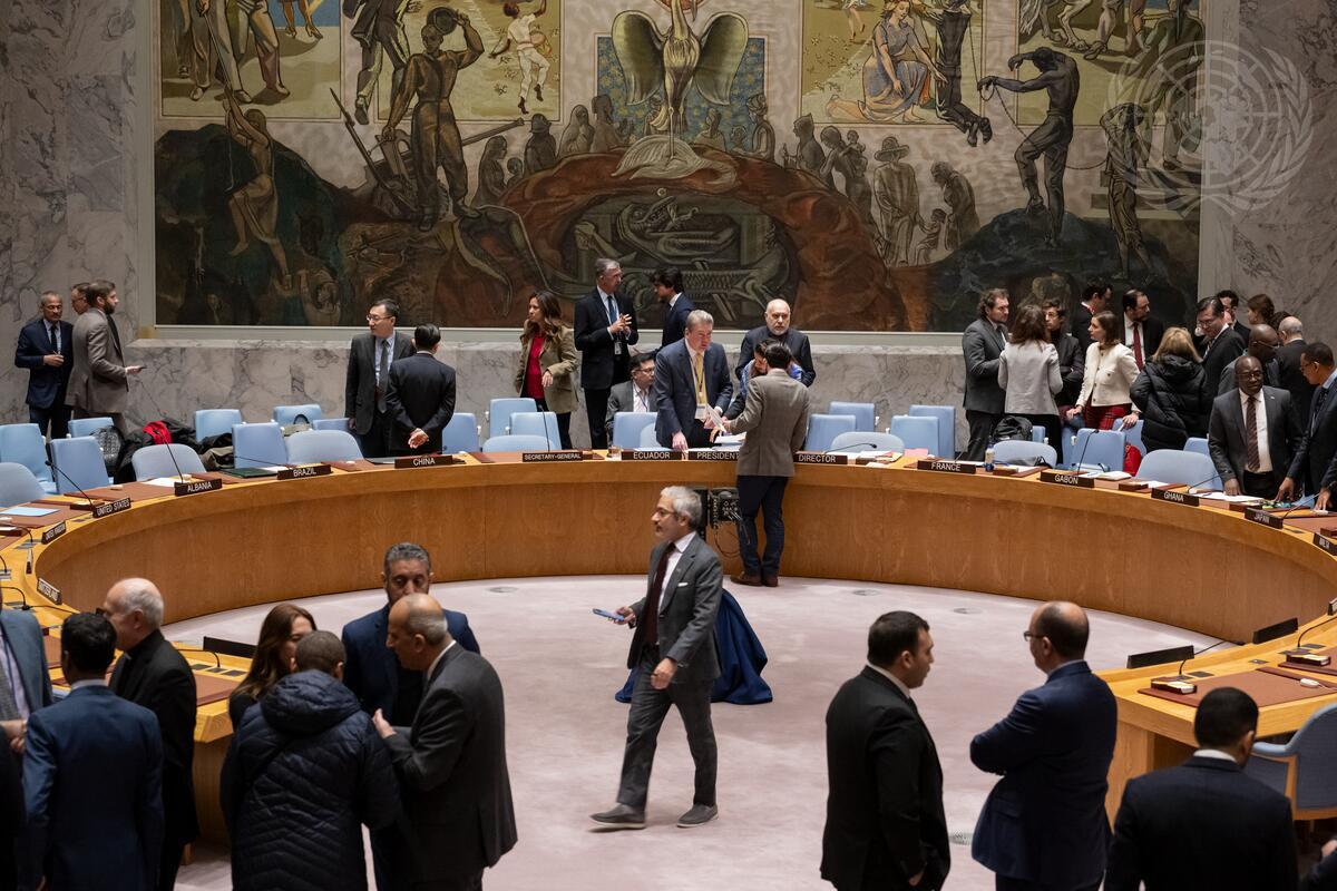 A view of delegates in the Security Council Chamber ahead of the Security Council meeting on the situation in the Middle East, including the Palestinian question.