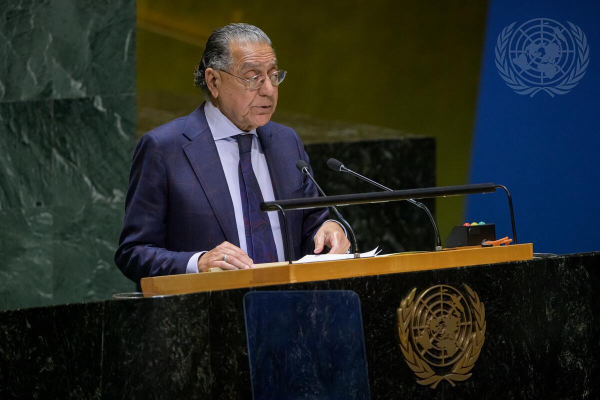 Munir Akram, Permanent Representative of Pakistan to the United Nations, speaking for all co-sponsors, introduces the draft resolution titled “Promotion of interreligious and intercultural dialogue, understanding and cooperation for peace”.