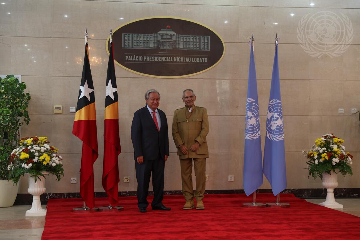 Secretary-General António Guterres (left) meets with José Ramos-Horta (right), President of the Democratic Republic of Timor-Leste, at the Presidential Palace in Dili, Timor-Leste.