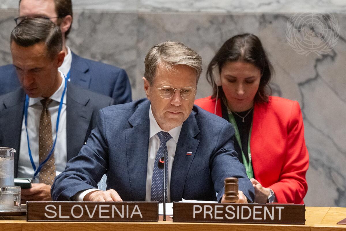 Samuel Žbogar, Representative to the Security Council of the Republic of Slovenia to the United Nations Security Council and President of the Security Council for the month of September, chairs the Security Council meeting on the situation in the Middle East (Syria).