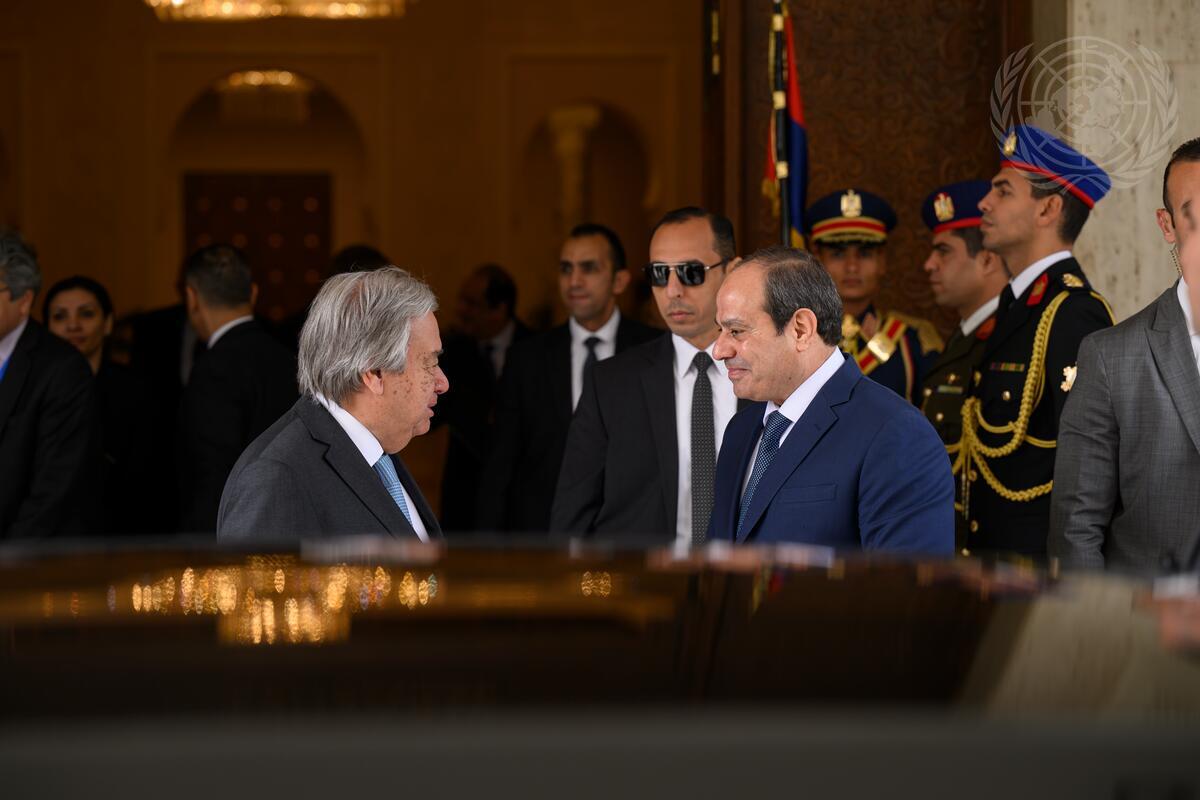 Secretary-General António Guterres (left) bids farewell to Abdel Fattah Al Sisi, President of the Arab Republic of Egypt.