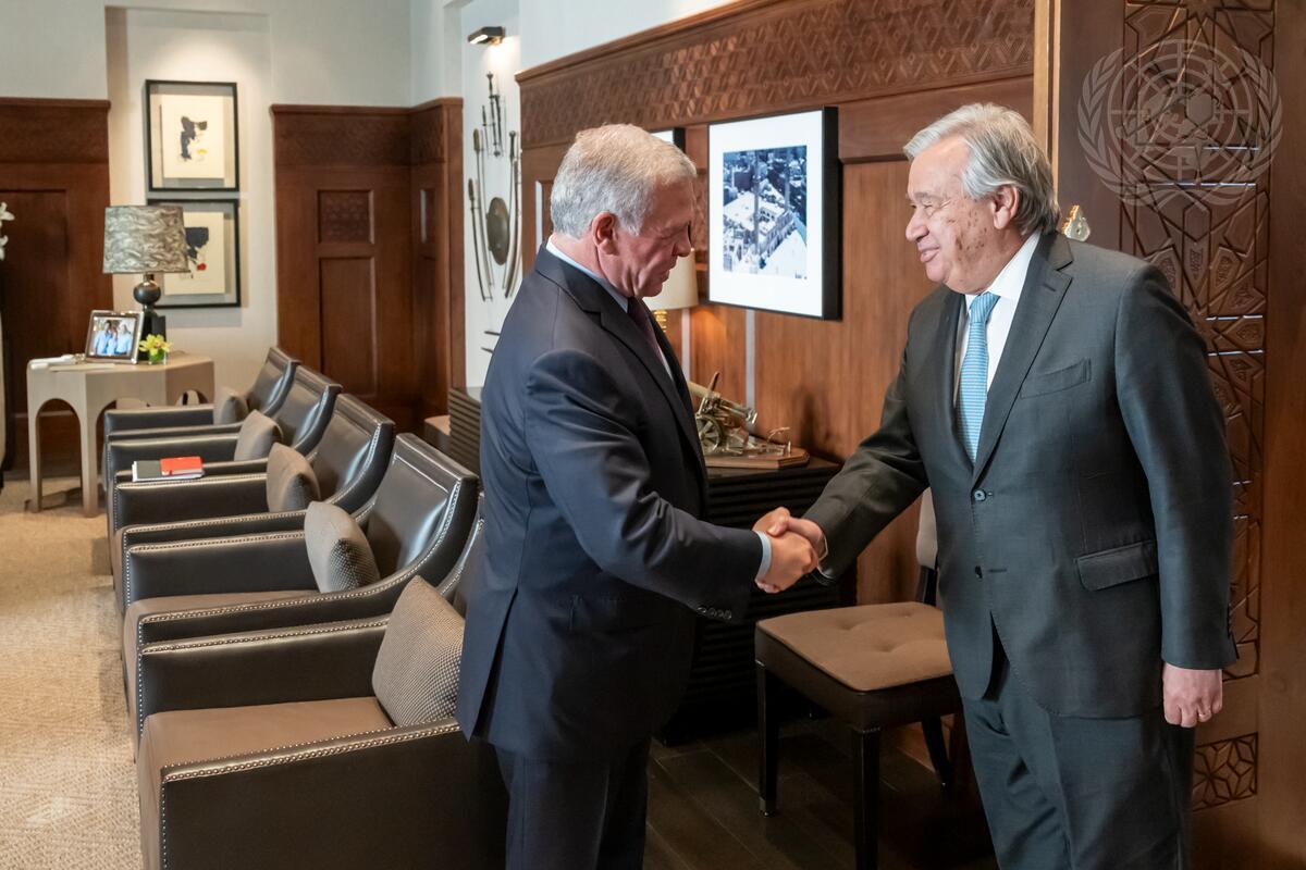 Secretary-General António Guterres (right) meets with King Abdullah II ibn Al Hussein, King of the Hashemite Kingdom of Jordan, in Amman.