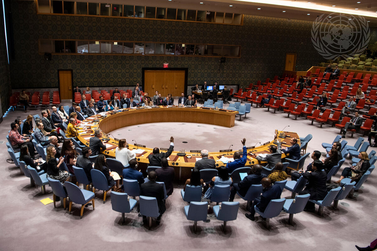 A view of Council members signaling their abstention (China, Russian Federation; South Africa; Equatorial Guinea; and Côte d’Ivoire).