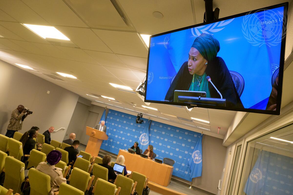 Caption Description Fatima Kyari Mohammed (on screen and left at dais), Permanent Observer of the African Union to the United Nations, and Cristina Duarte (right at dais), Under-Secretary-General and Special Adviser on Africa, brief reporters on the 2024 Africa Dialogue Series (6-30 May).
