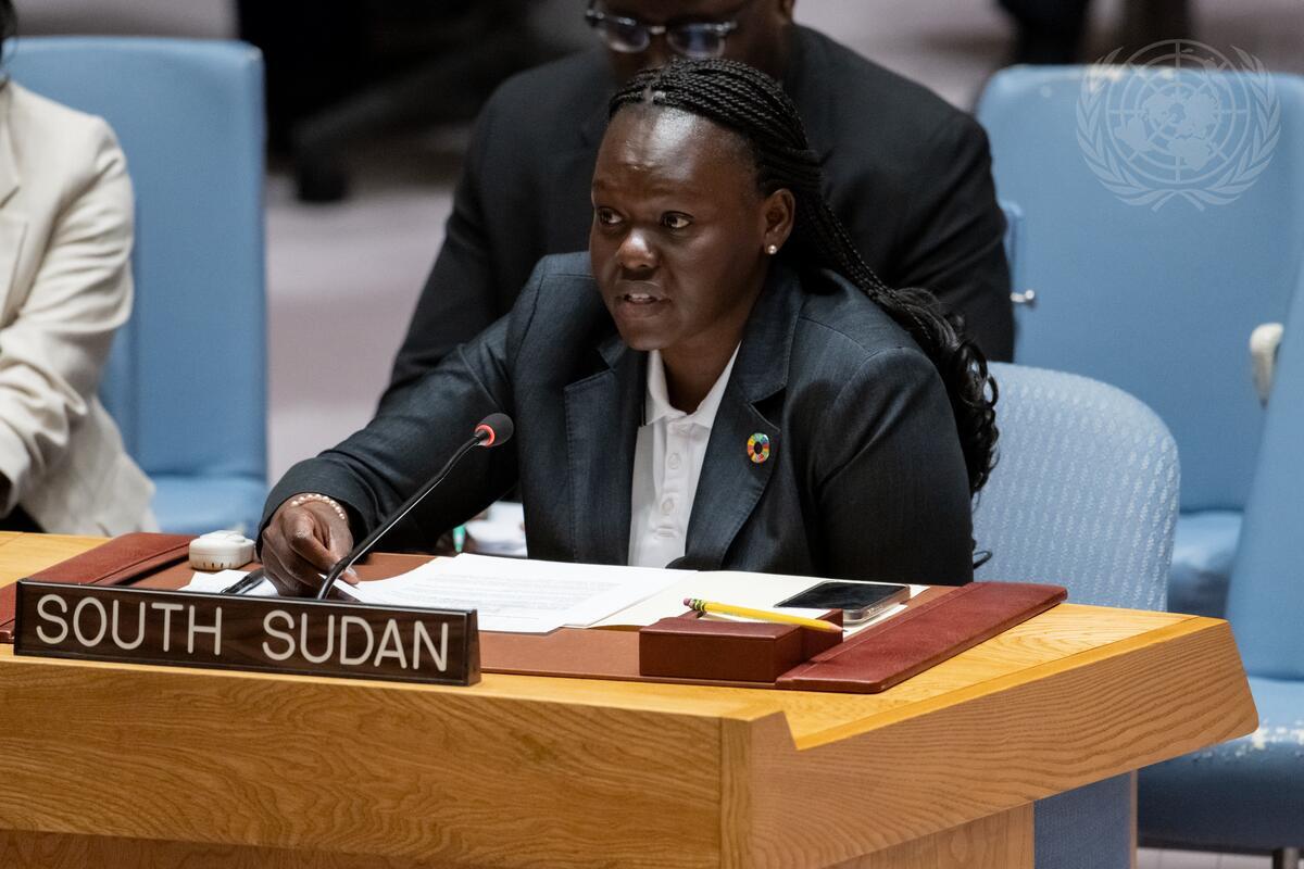 Cecilia A.M. Adeng, Permanent Representative of South Sudan to the United Nations, addresses the Security Council meeting on the situation in the Sudan and South Sudan. The Council heard a Report of the Secretary-General on the situation in Abyei.