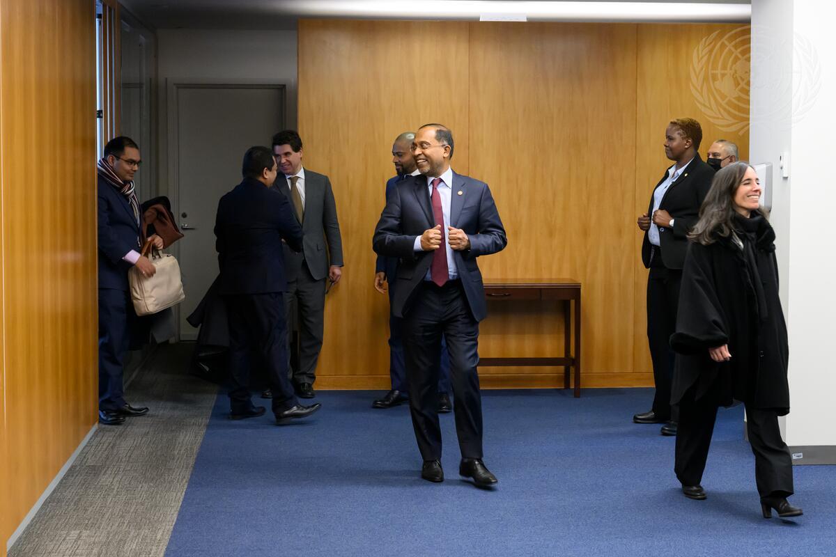 Zambry Abdul Kadir (third from right), Minister for Foreign Affairs of Malaysia, arrives for his meeting with Secretary-General António Guterres (not pictured).