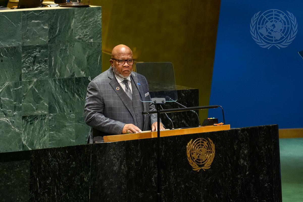 Dennis Francis, President of the seventy-eighth session of the General Assembly, addresses the 39th plenary meeting on the topic of the question of Palestine.