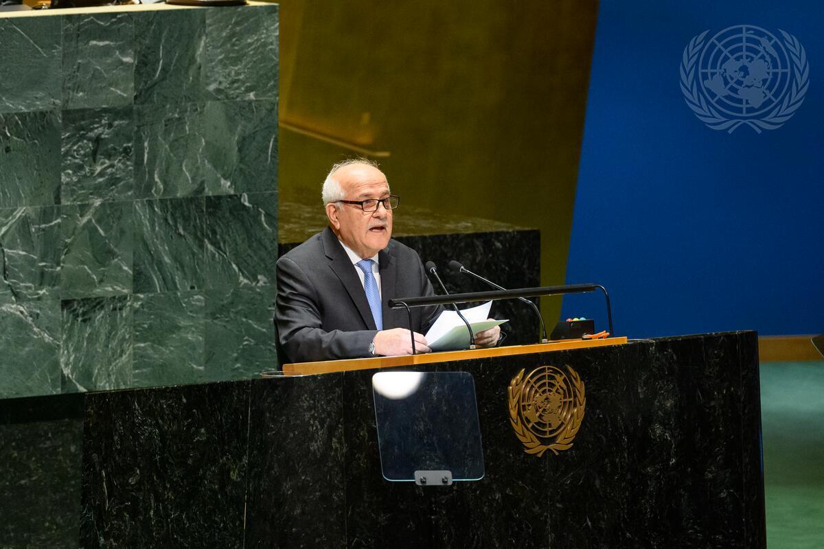 Riyad Mansour, Permanent Observer of the State of Palestine to the United Nations, addresses the 39th plenary meeting on the topic of the question of Palestine.