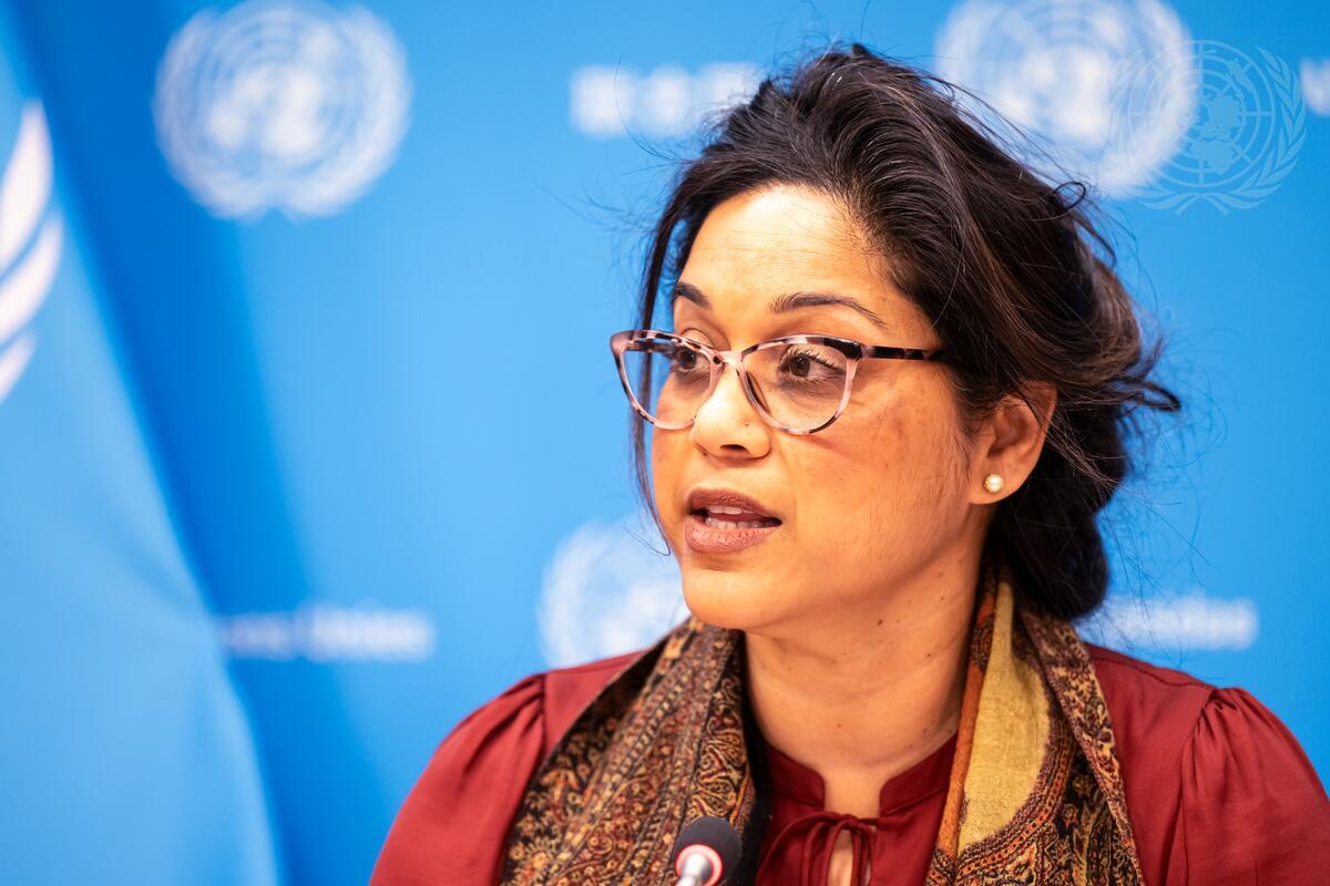 Angeli Achrekar, Assistant Secretary-General and Deputy Executive Director of UNAIDS, briefs reporters on the World AIDS Day report, entitled: “Let Communities Lead”. World AIDS Day is observed 1 December.